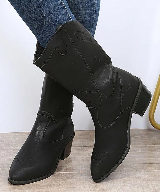 The pointed toe and rounded ankle opening bring a Southwestern touch to these sleek ankle boots.