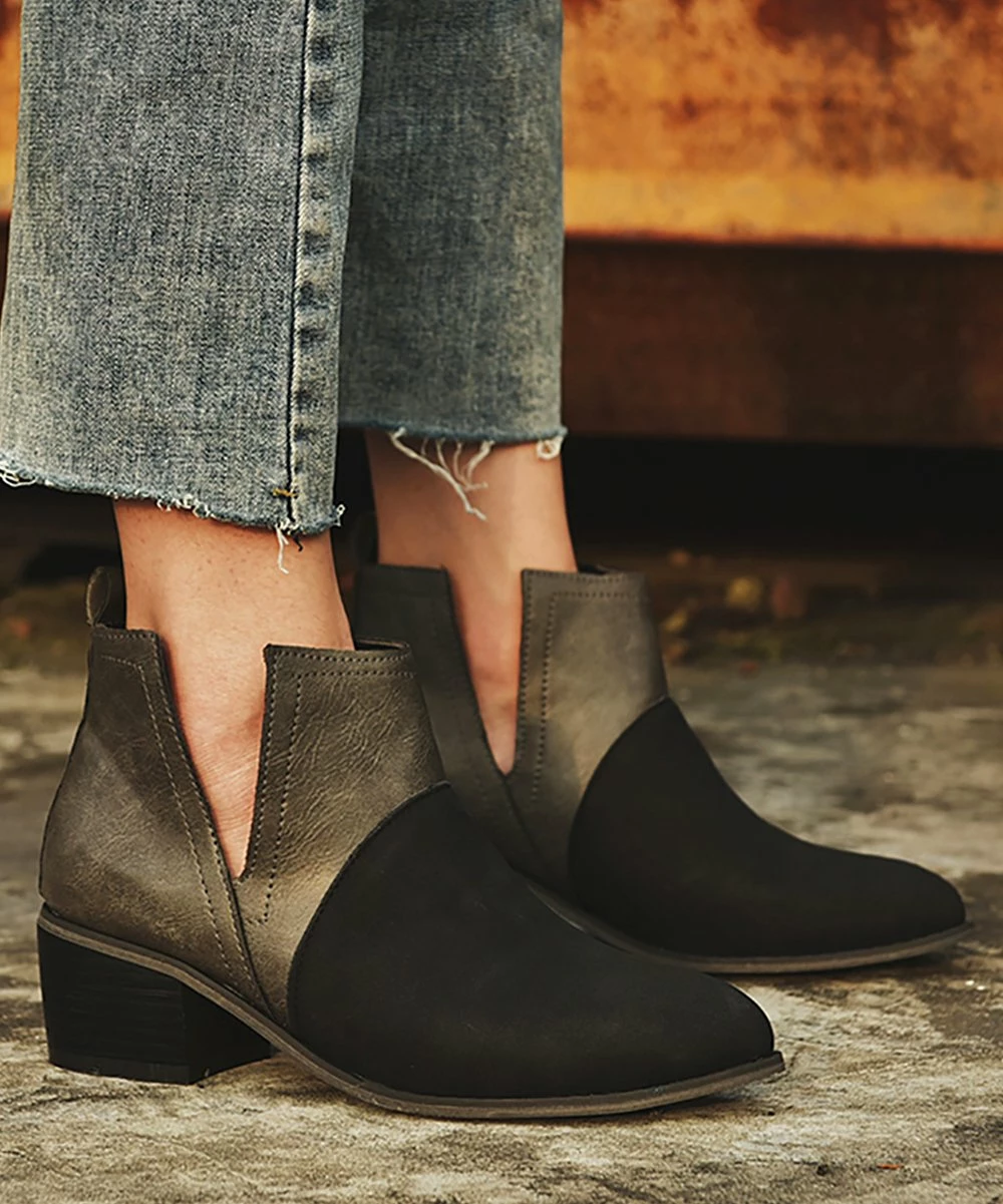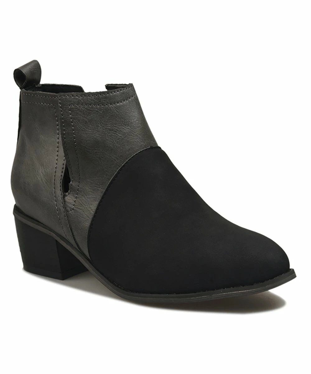 Dress up your ensembles with these stylish booties featuring a combination of matte and shiny finishes for a unique look.