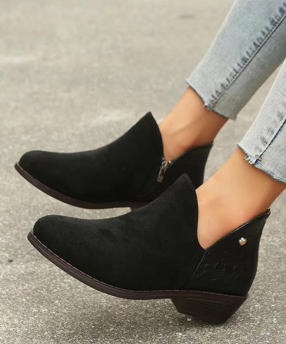 Chic ankle boot featuring a notched cuff upper with side zip. Breathable lining and heel-to-toe cushioned balance.