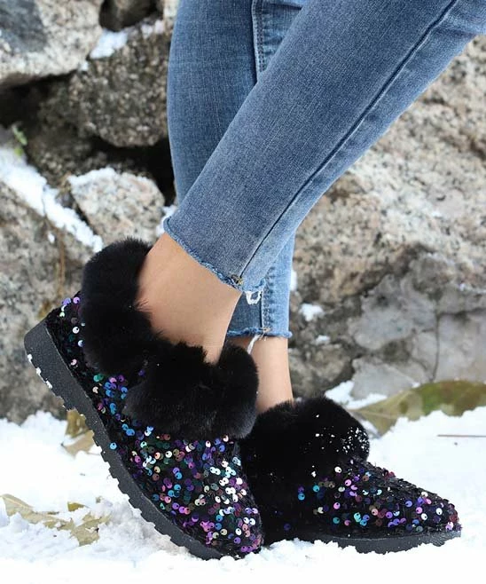 Add shimmer and sparkle to every step you take when you reach for these sequin snow boots.