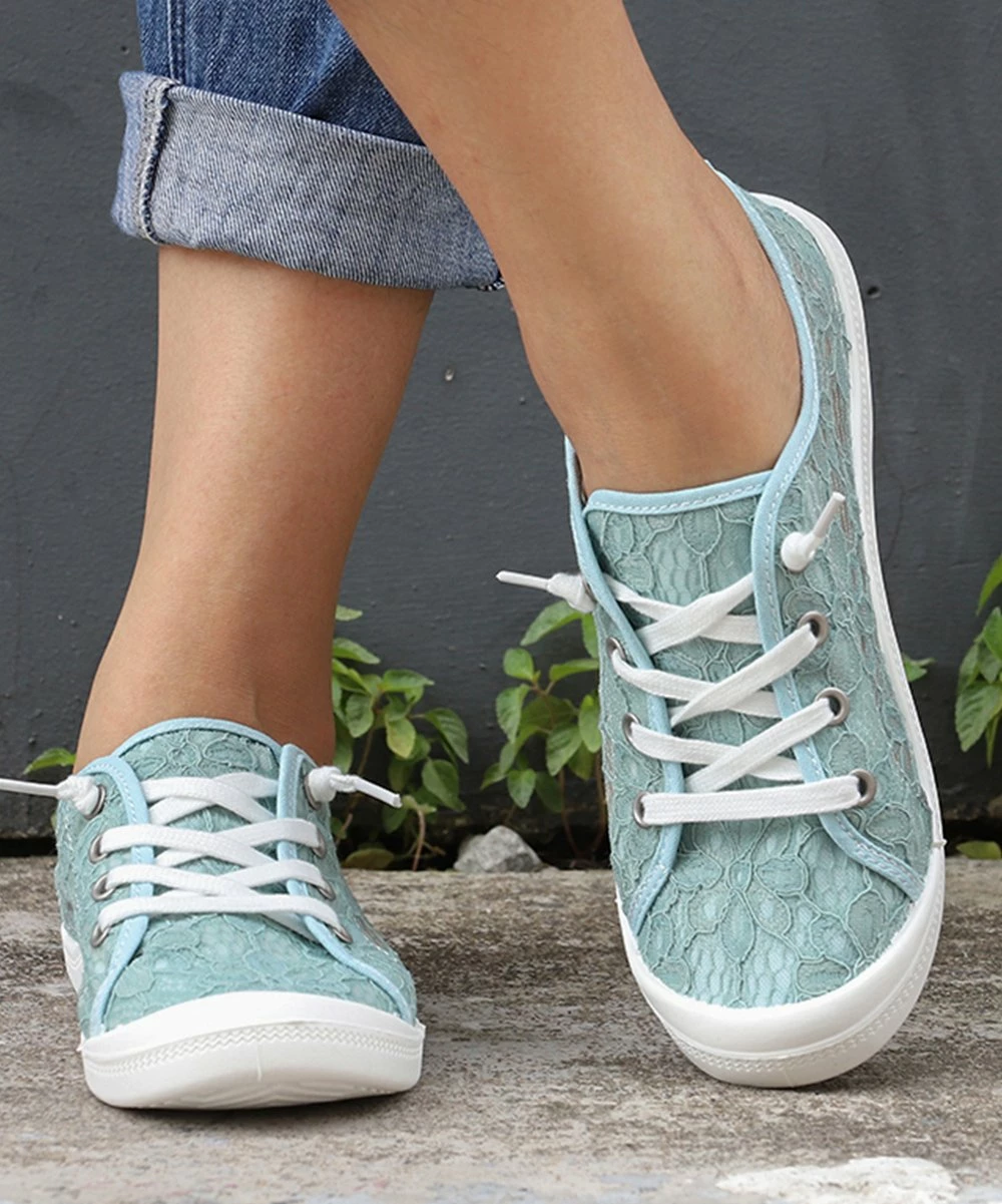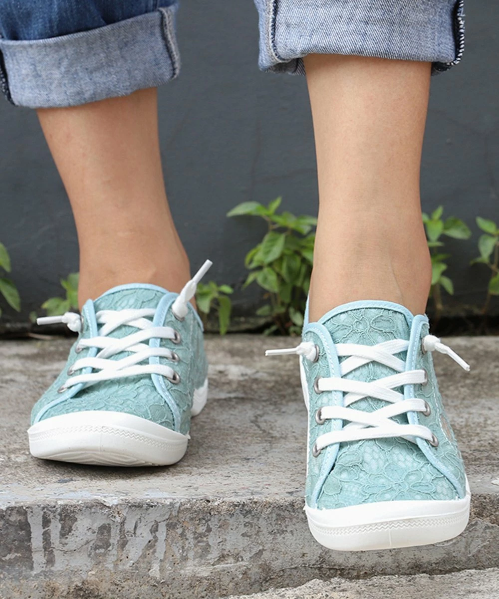 Refresh your everyday look with these versatile lace-up sneakers that feature floral mesh lace for breathability and style.