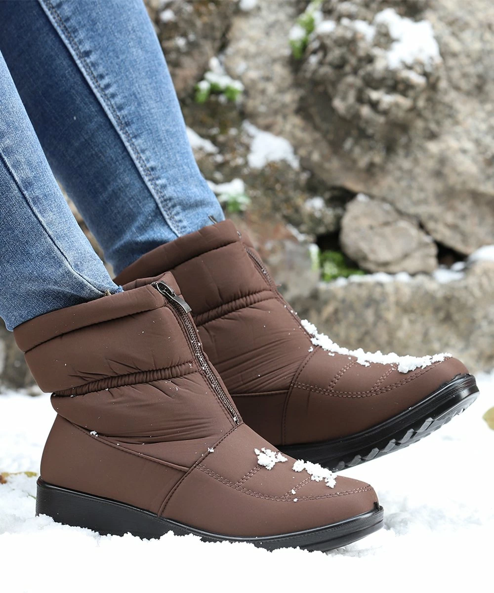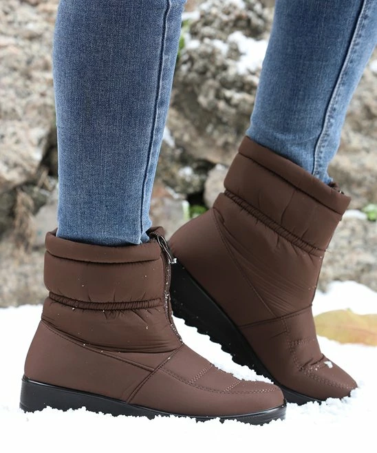 Keep your feet warm and dry with these wedge snow boots crafted with a front-zip design and waterproof material.