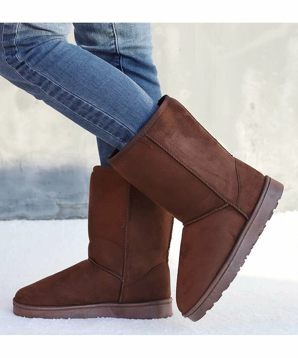 Keep your feet feeling toasty and comfortable by running out to do errands in this pair of boots made with soft suede for a slipper-like feel.
