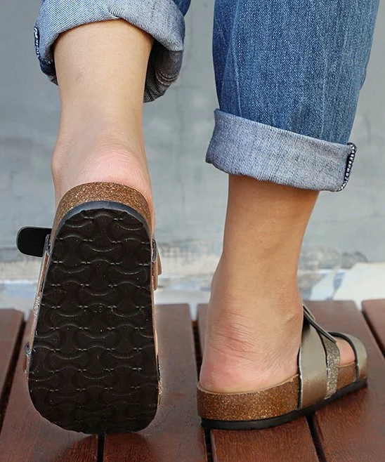Call attention to your pedi with this slide that frames your foot with a series of three straps. A buckle lets you fine-tune the fit, and a contoured footbed brings comfortable support to your steps.