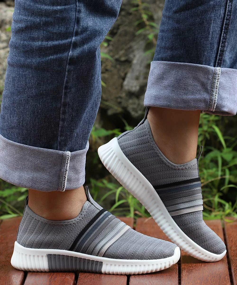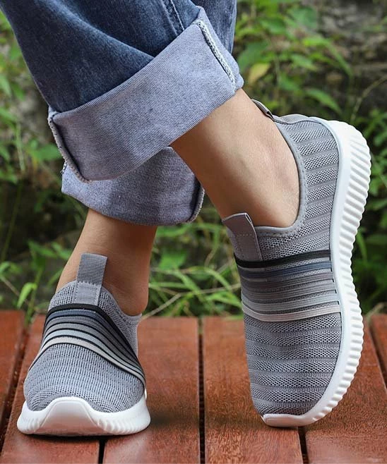 Breathable mesh sock sneakers featuring convenient slip-on style and a bright stripe design.