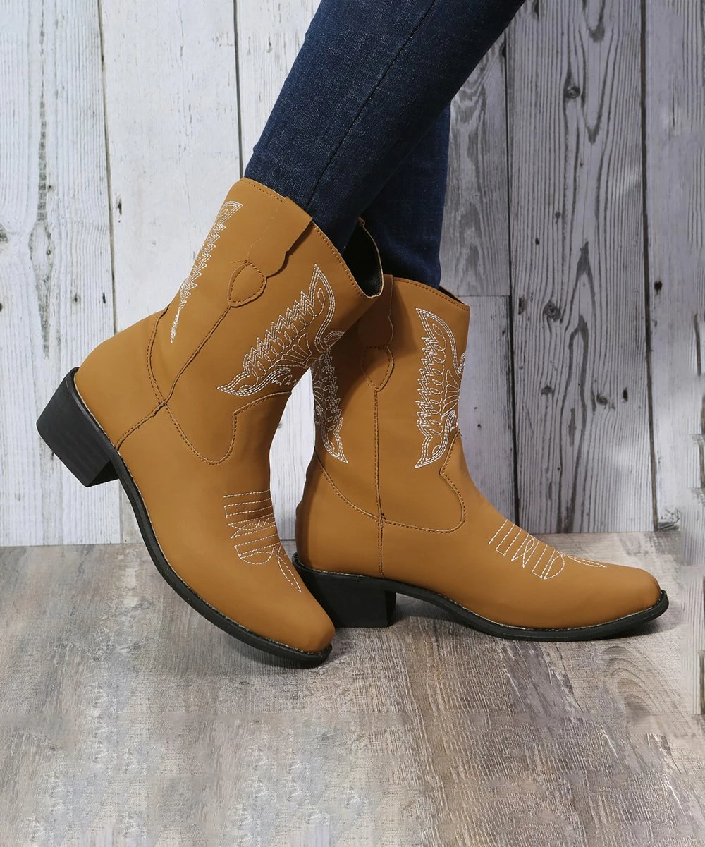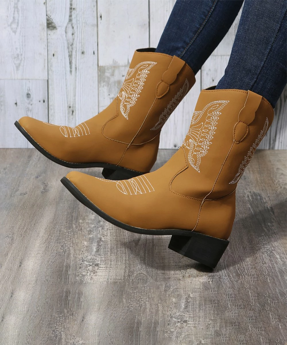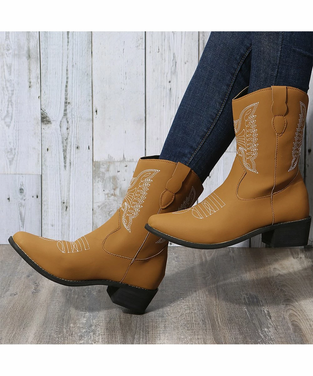 Western boot featuring a standout seam-accent design and a bold block heel.