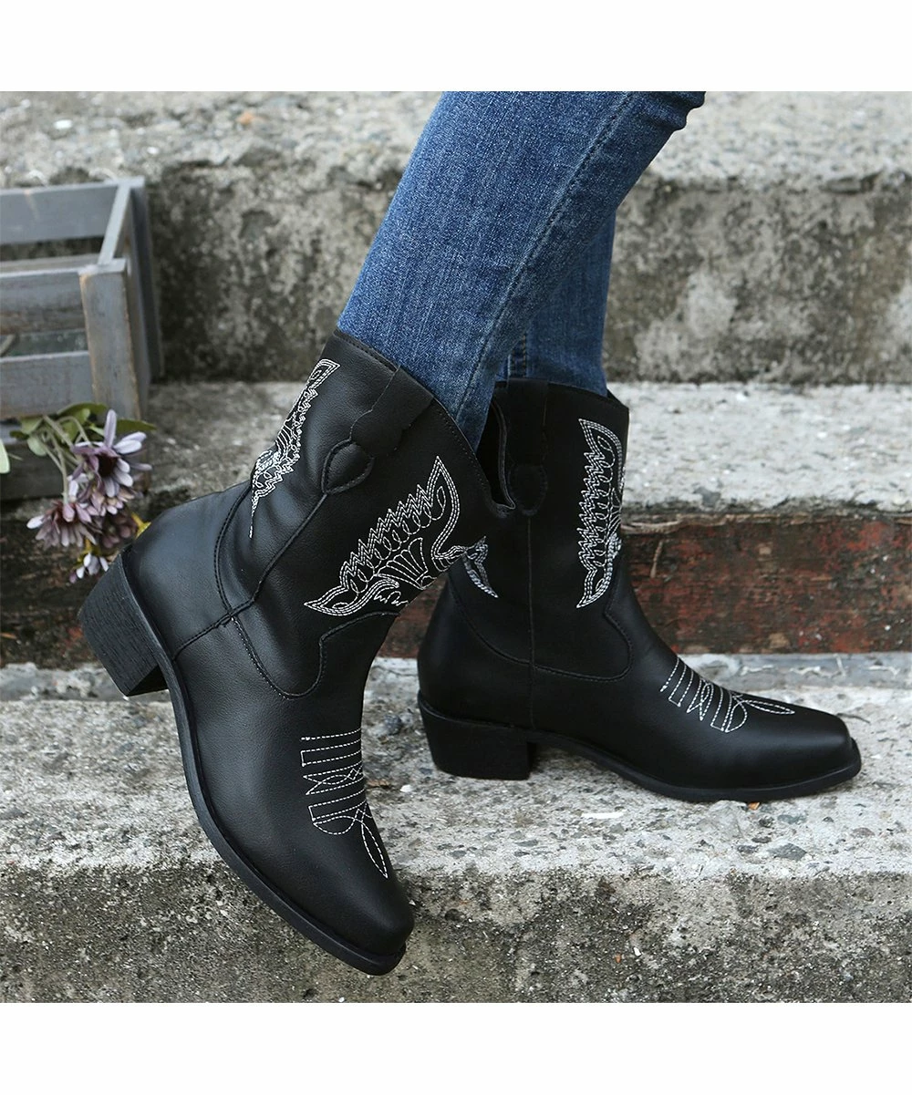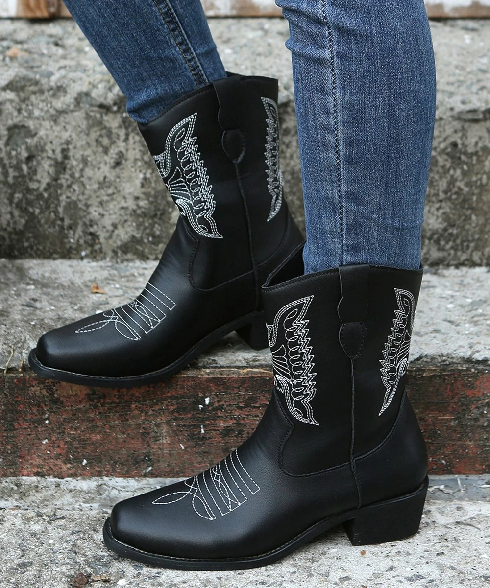Western boot featuring a standout seam-accent design and a bold block heel.