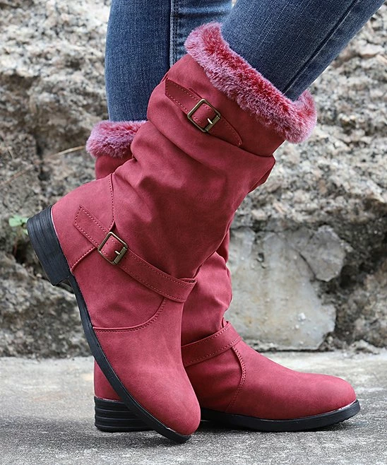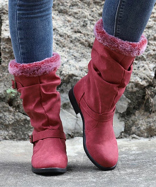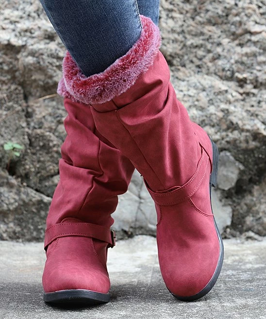 Bolster your cold-weather wardrobe with this snow boot that features a faux fur cuff.