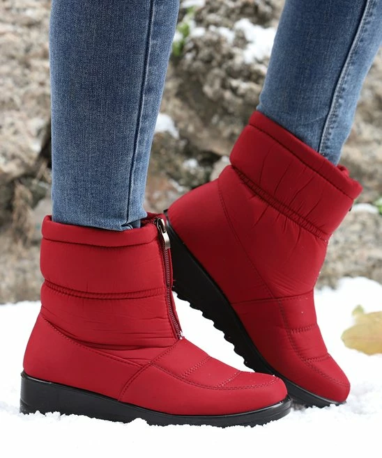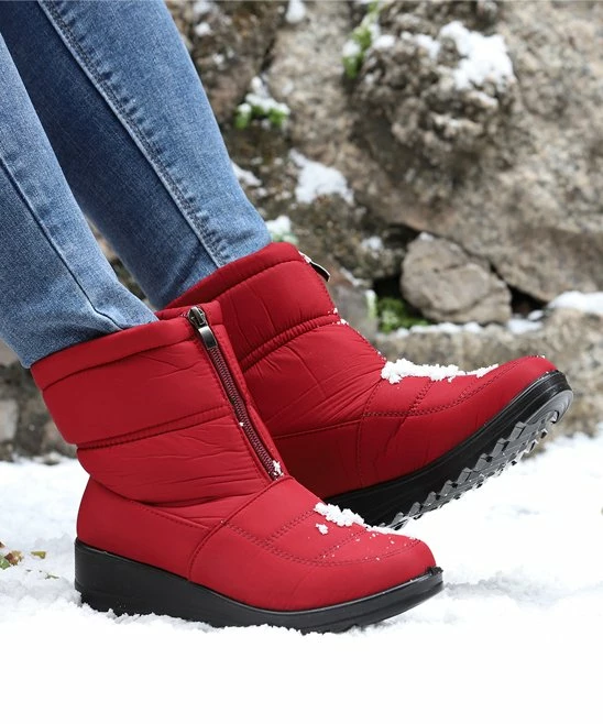Keep your feet warm and dry with these wedge snow boots crafted with a front-zip design and waterproof material.