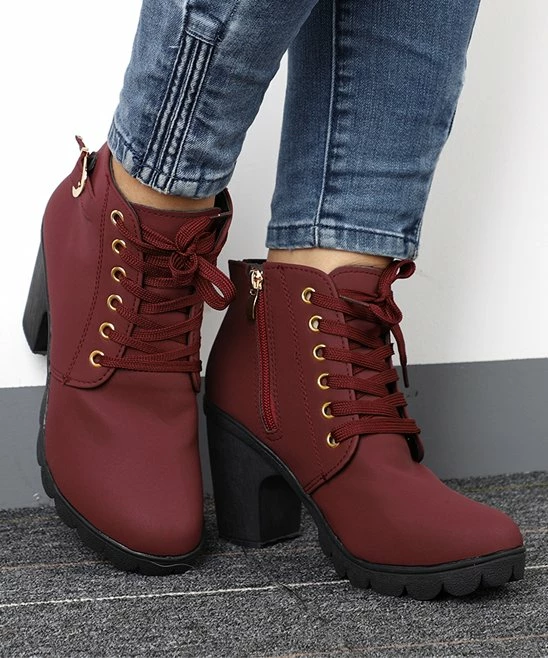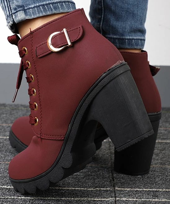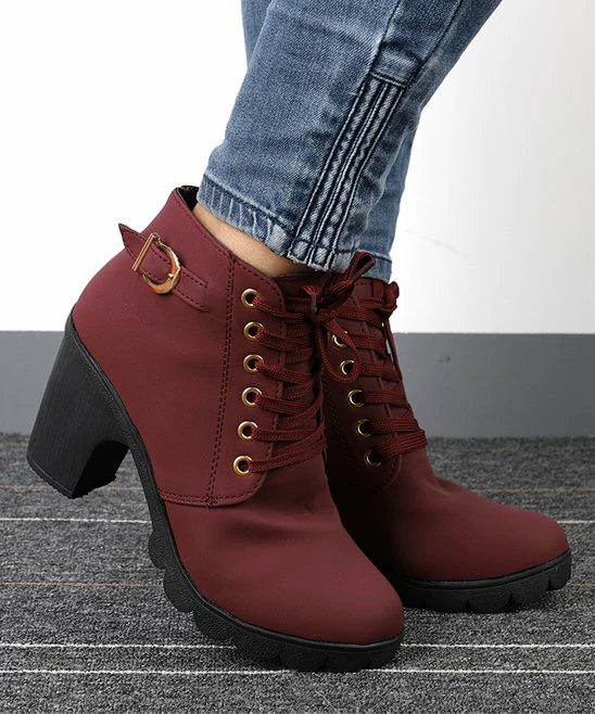 Bring a trend-right finish to your weekend ensembles via this lace-up ankle boot crafted with a buckle accent and a sturdy block heel.