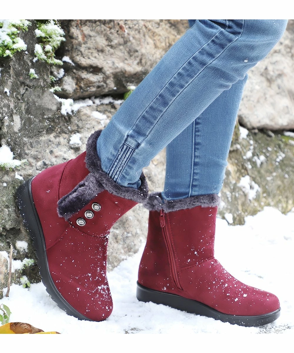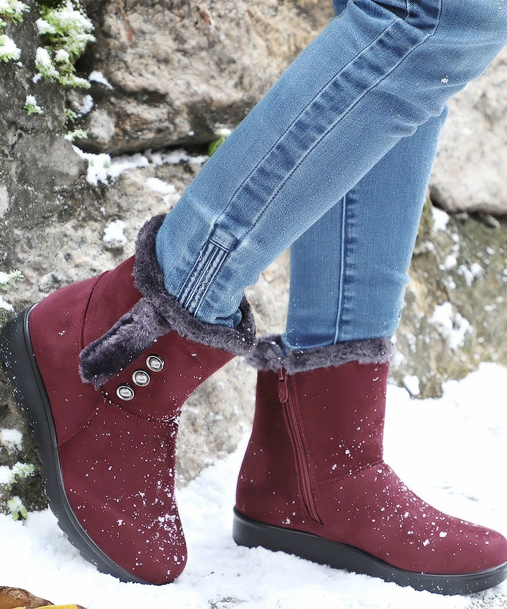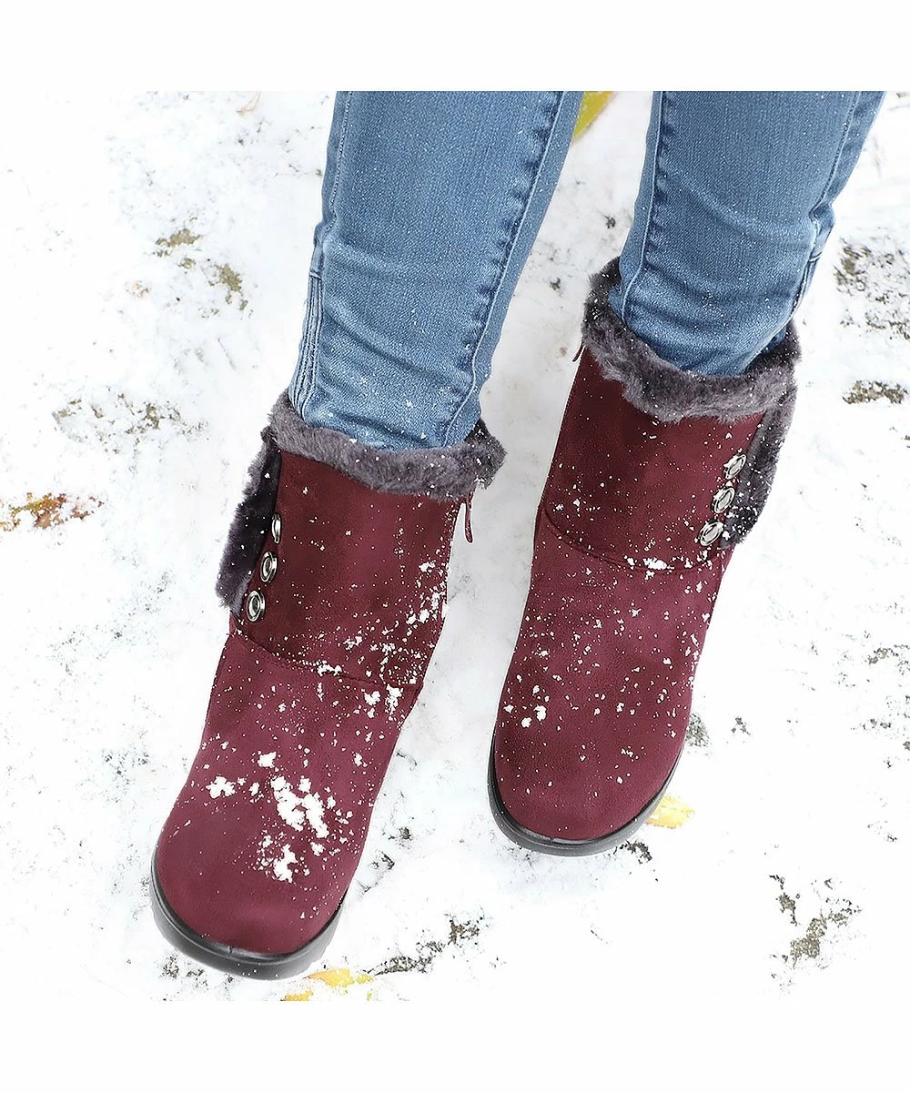 Bundle up before heading outdoors in this faux fur-lined snow boot made with a waterproof upper to keep your feet dry. A neat row of buttons add eye-catching flair to finish the look.