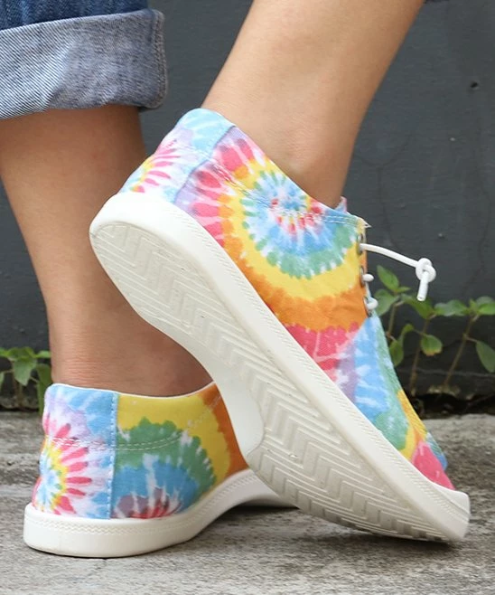 Decorative laces give this slip-on sneaker a classic look while a bold tie-dye print demands attention.