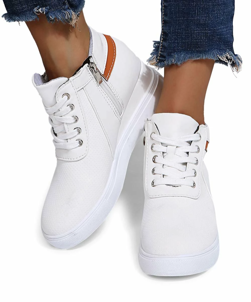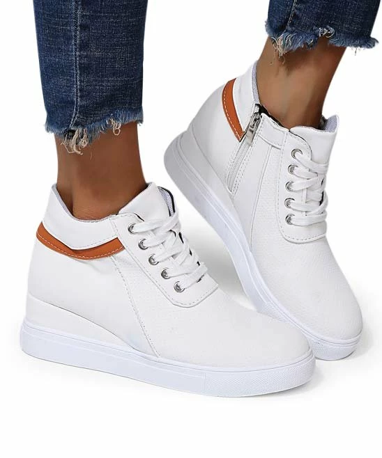 Casual hi-top wedge sneakers featuring a contrast stripe at the back. Zip closure for easy on and off.