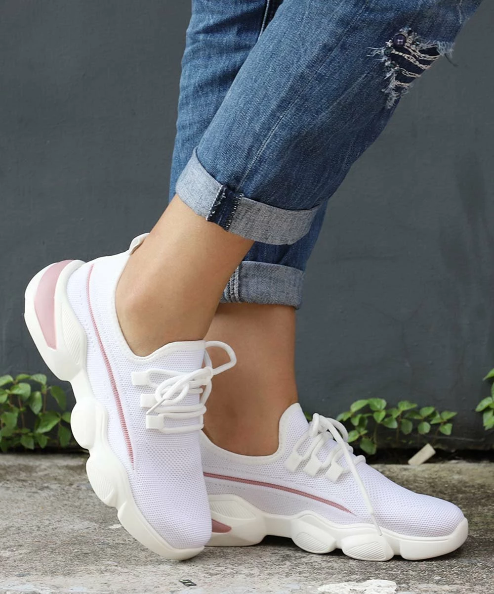 This sporty sneaker features a breathable mesh upper and a cushioned footbed for a lightweight, comfortable wear. Complete with laces for a secure fit.
