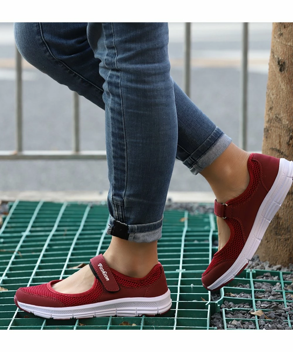 Boasting the look of a Mary Jane, this shoe is made with a durable, mesh material which is wear-resistant and offers enhanced breathability to help keep your feet comfortable all day.